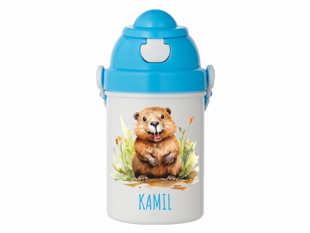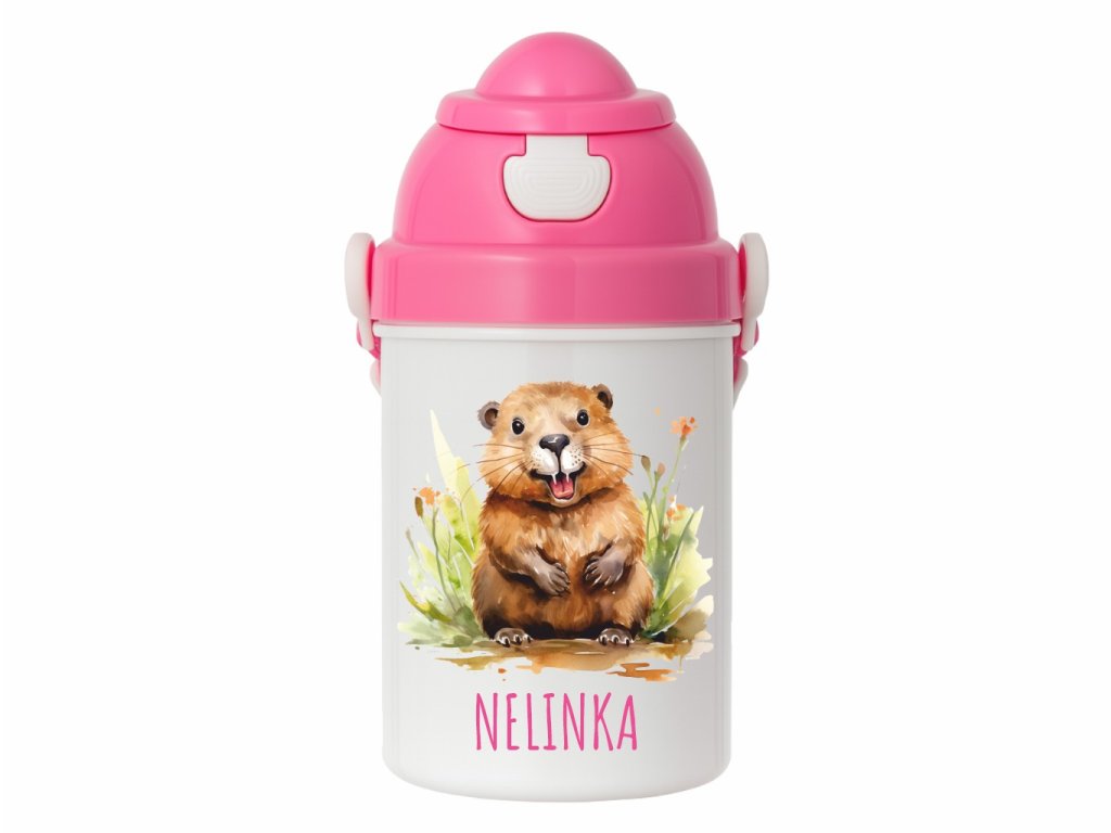 Originálna detská fľaša s akvarelovým motívom bobra. Praktická do škôlky, na výlety aj ako darček pre malých milovníkov zvieratiek a prírody.