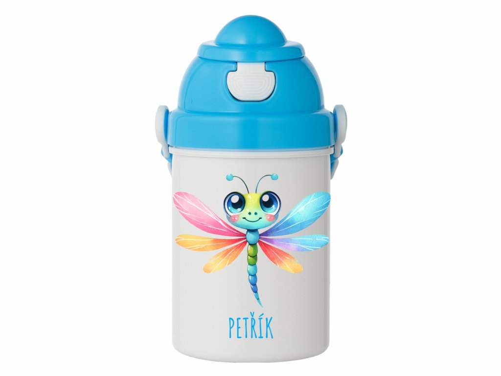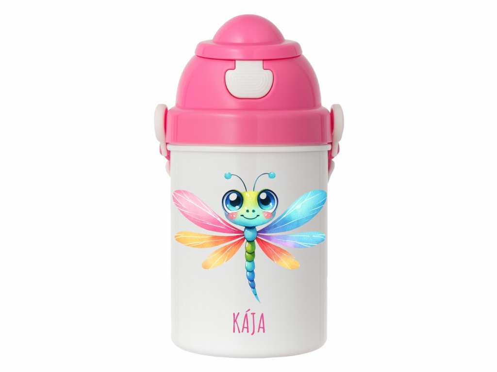 Jemná detská fľaša s motívom farebnej vážky. Ideálna do škôlky, na výlety aj ako originálny darček pre malých milovníkov prírody.