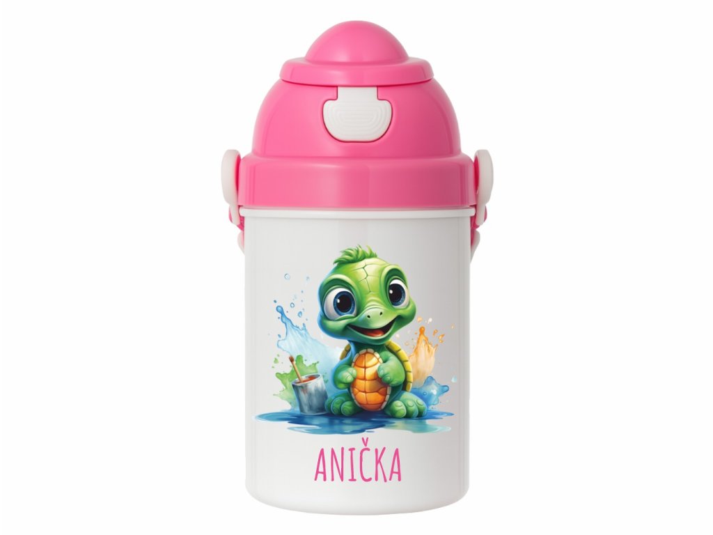 Detská fľaša s motívom korytnačky v akvarelovom štýle prináša pokojný a priateľský dizajn, ktorý zaujme každé dieťa. Roztomilá korytnačka pomáha rozvíjať vzťah k prírode a motivuje deti spoznávať svet okolo seba. Fľaša je ľahká, nerozbitná a vyrobená z kvalitného polymeru bez BPA – bezpečného pre každodenné používanie. Ideálna do škôlky, na prechádzky aj výlety. Ergonomický tvar presne sedí do malej detskej ruky a uzáver ľahko zvládnu aj tí najmenší. Vďaka originálnej potlači je fľaša nielen praktická, ale zároveň aj vynikajúci tip na darček, ktorý poteší deti svojou roztomilosťou aj funkčnosťou.Dodatočné parametre