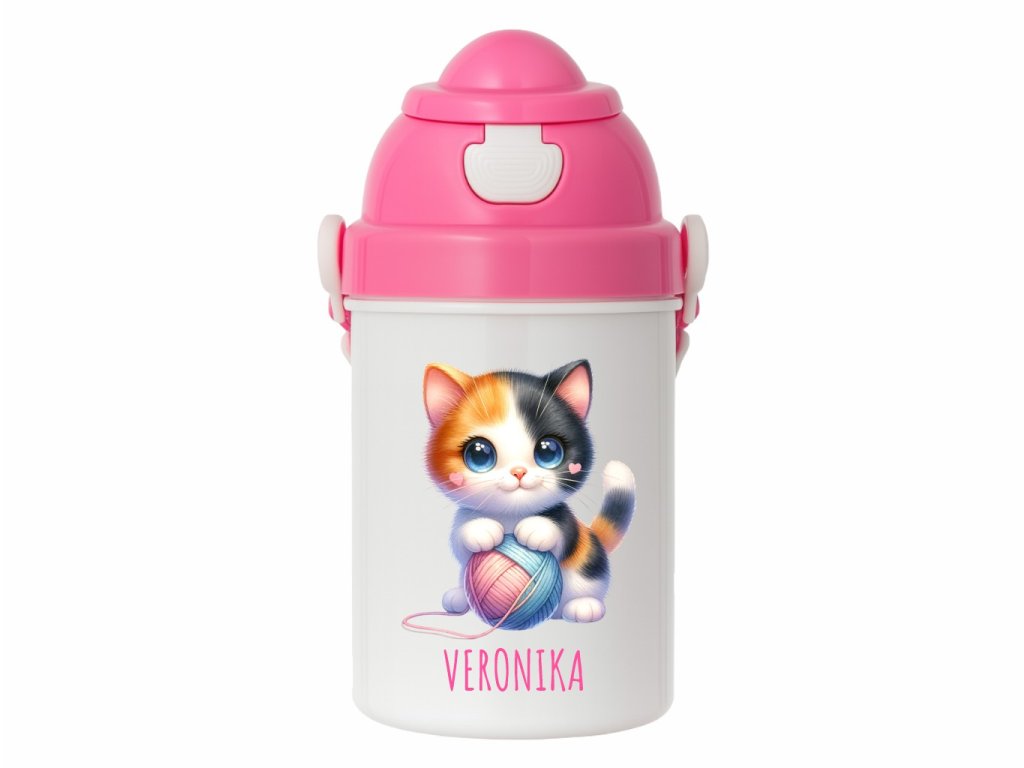 Roztomilá detská fľaša s motívom mačičky a klbka. Perfektná do škôlky, na cesty aj ako darček pre malých milovníkov zvieratiek a hier.