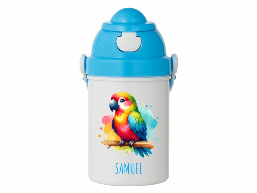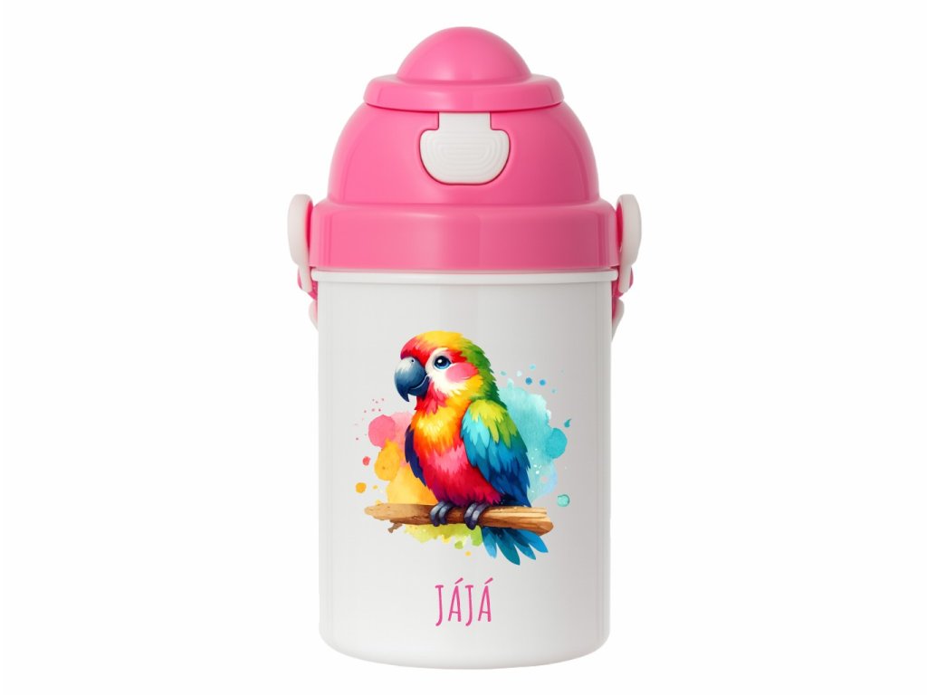 Táto detská fľaša s motívom papagája očarí svojím tropickým nádychom a veselým vzhľadom. Akvarelový potlač papagája prináša pestrofarebný detail, ktorý si deti okamžite zamilujú. Fľaša s objemom 400 ml je ideálna do škôlky, na rodinné výlety aj na každodenné používanie doma. Vďaka ľahkému, nerozbitnému materiálu sa pohodlne nosí a je bezpečná aj pre najmenších. Je vyrobená z kvalitného polyméru bez obsahu BPA, čo zaručuje zdravotnú nezávadnosť. Svojím atraktívnym dizajnom nielenže motivuje deti k pravidelnému pitiu, ale stáva sa aj obľúbeným doplnkom. Skvelý tip na darček, ktorý spája praktickosť s originálnym vzhľadom. Papagáj je ideálnym motívom pre všetkých malých objaviteľov.Dodatočné parametre