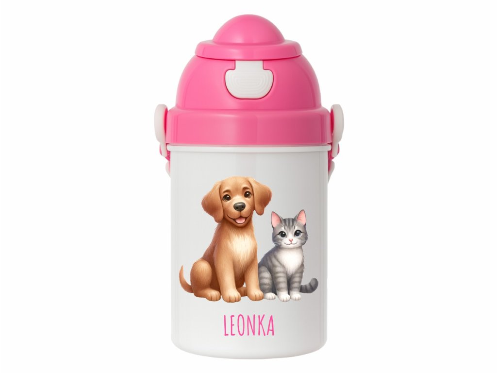 Detská fľaša s potlačou psíka a mačičky je ideálna do škôlky aj na výlety. Ľahká, odolná a nádherný darček pre malé deti.