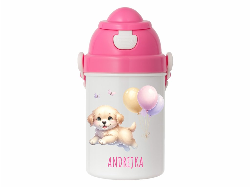 Detská fľaša s potlačou psíka s balónikmi je ideálna do škôlky aj na výlety. Ľahká, odolná a skvelý darček pre malé deti.