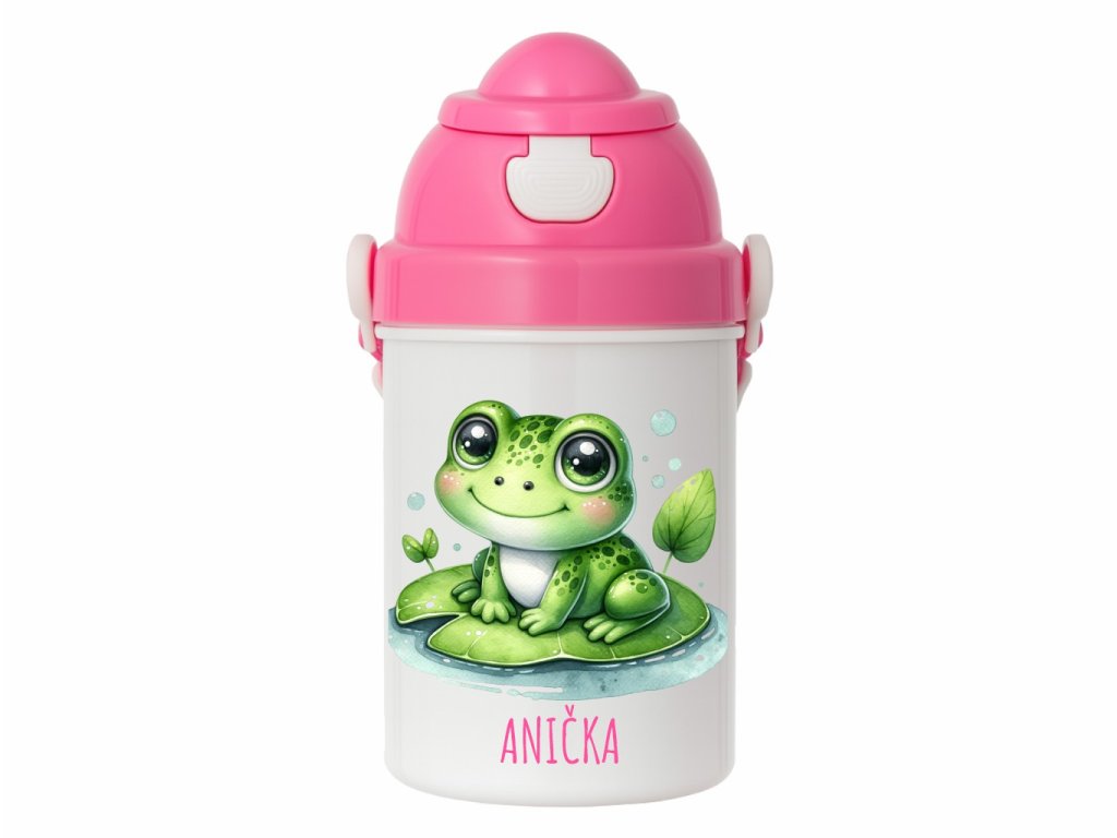 Detská fľaška s potlačou žabky na lekne poteší každého malého milovníka prírody. Ideálna do škôlky aj na výlety.
