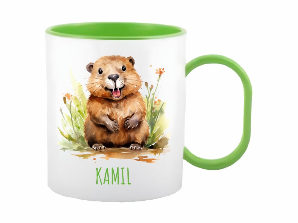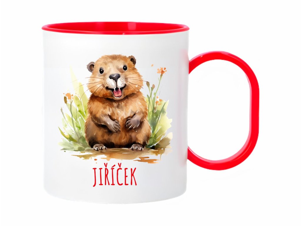 Roztomilý plastový hrnček s obrázkom veselého bobra, ideálny pre malých prírodovedcov a milovníkov zvierat.
