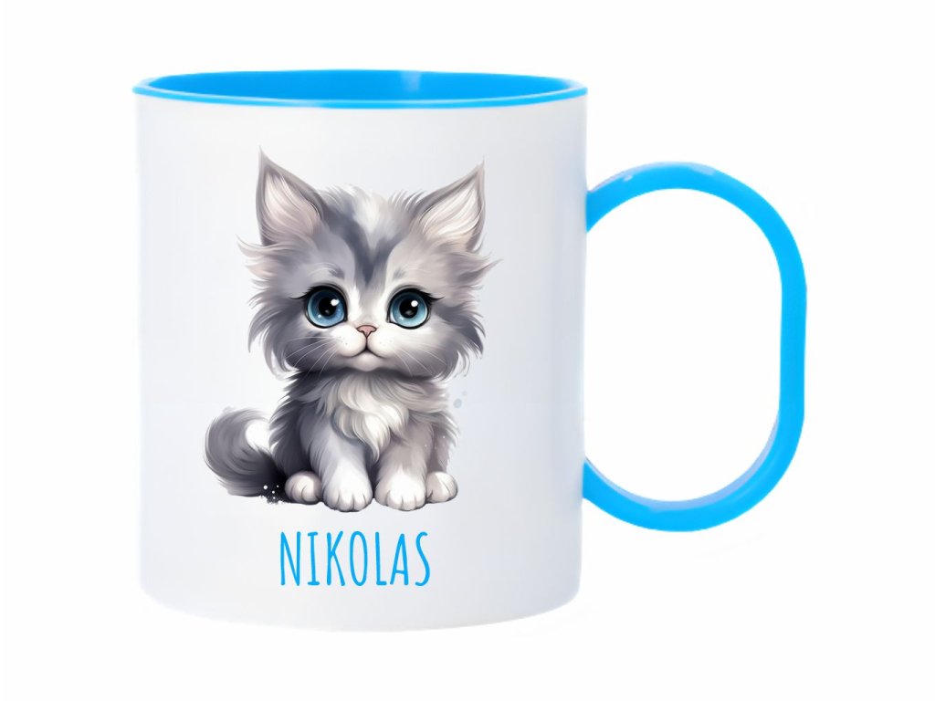 Predstavujeme vám hrnček "Mačka" z našej kolekcie Akvarela Design, ideálny pre milovníkov domácich maznáčikov. Tento 300 ml plastový hrnček je ozdobený krásnym obrázkom malej mačičky s veľkými modrými očami, ktoré určite rozveselia deň každého dieťaťa.