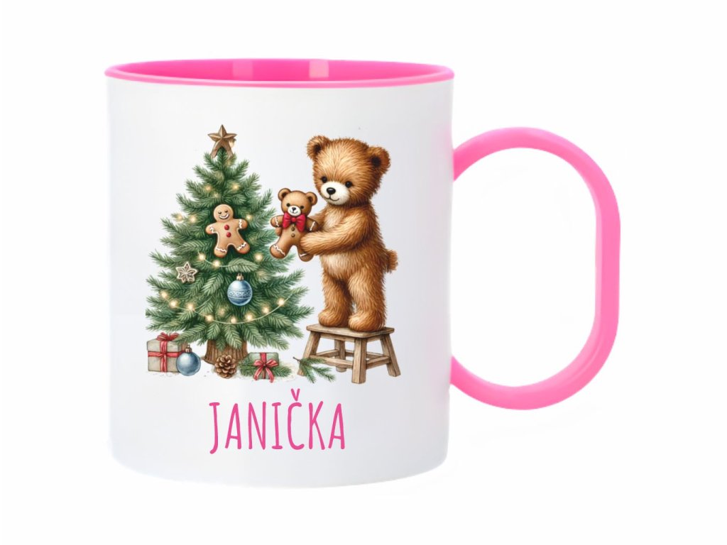 Roztomilý plastový hrnček s vianočným motívom medvedíka, ktorý zdobí stromček, je skvelým darčekom pre deti. Ideálny na vianočnú atmosféru a radosť z osobného hrnčeka s menom.